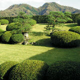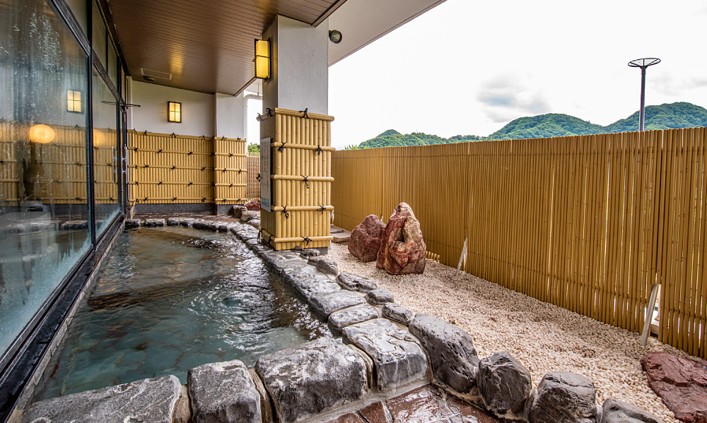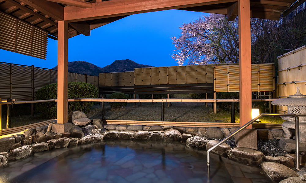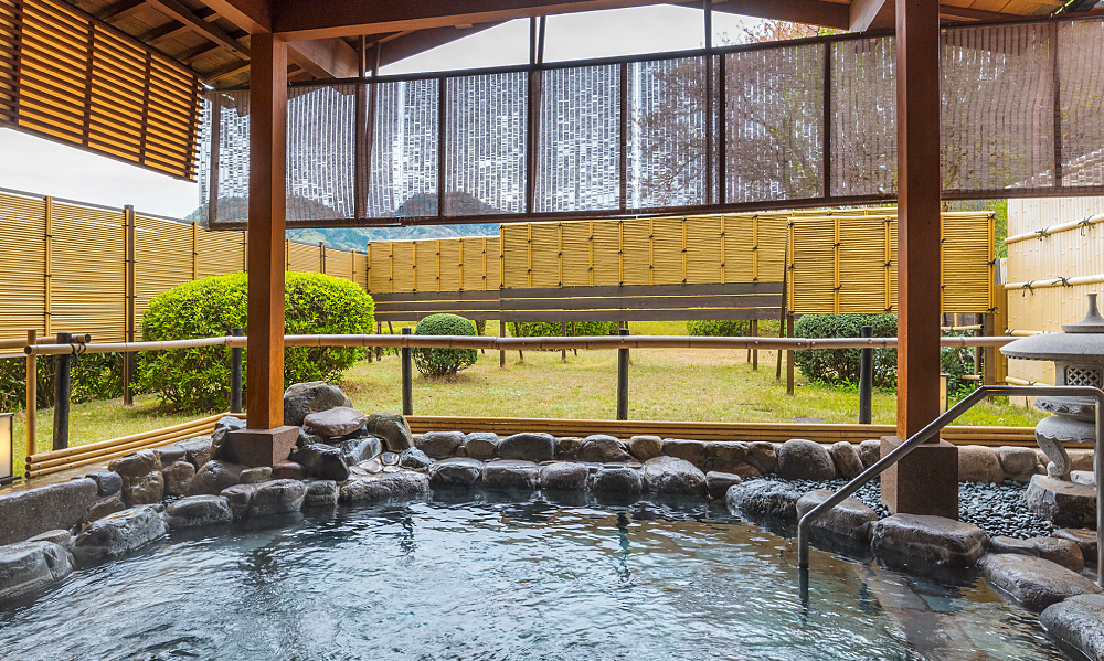 Open-air bath with a view of the Japanese garden