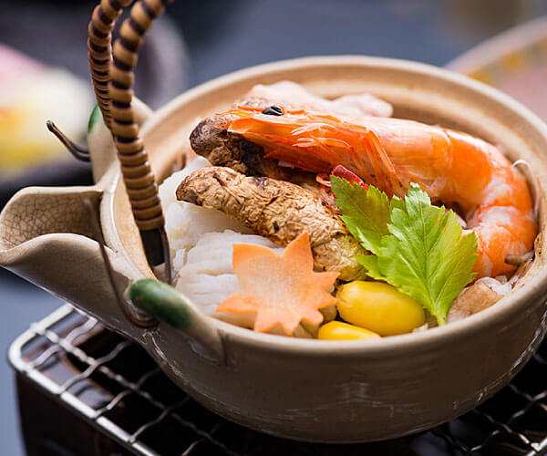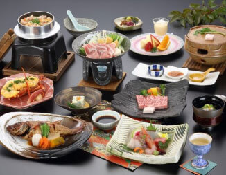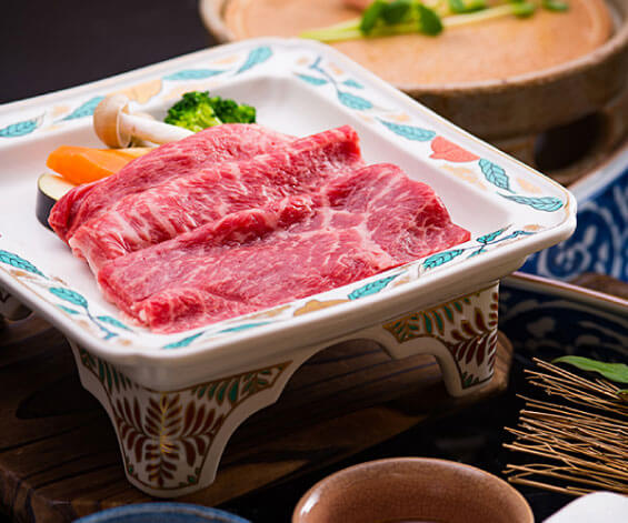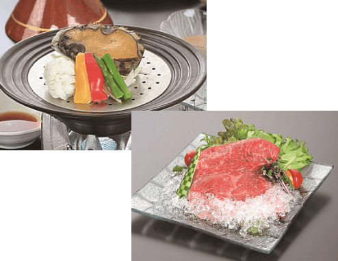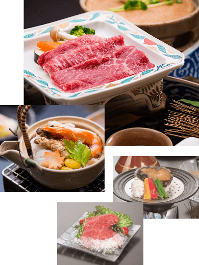 Our luxurious dinners include many seasonal ingredients and mainly locally produced ingredients such as Tajima beef, abalone and stork-raised rice.
