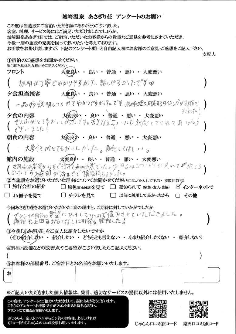 また、機会がございましたらあさぎり荘をよろしくお願いいたします。